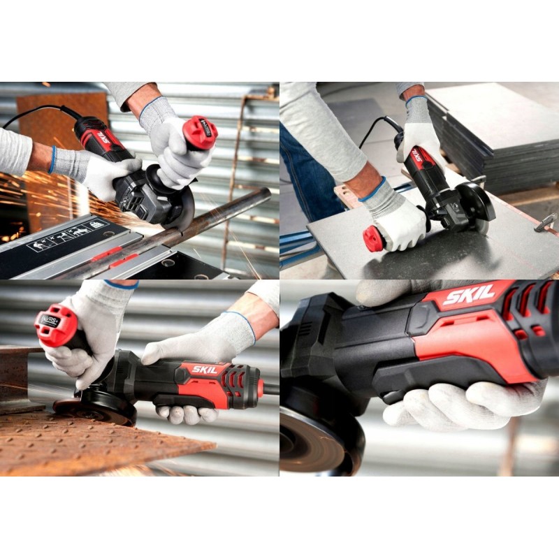 Szlifierka kątowa 125mm o mocy 850W firmy SKIL to solidna szlifierka kątowa zaprojektowana do różnych zadań związanych ze cięciem i szlifowaniem. Wykonana z lekkich materiałów oraz obudowa z metalu sprawiają, że jest to jedna z najbardziej wytrzymałych szlifierek kątowych marki SKIL.