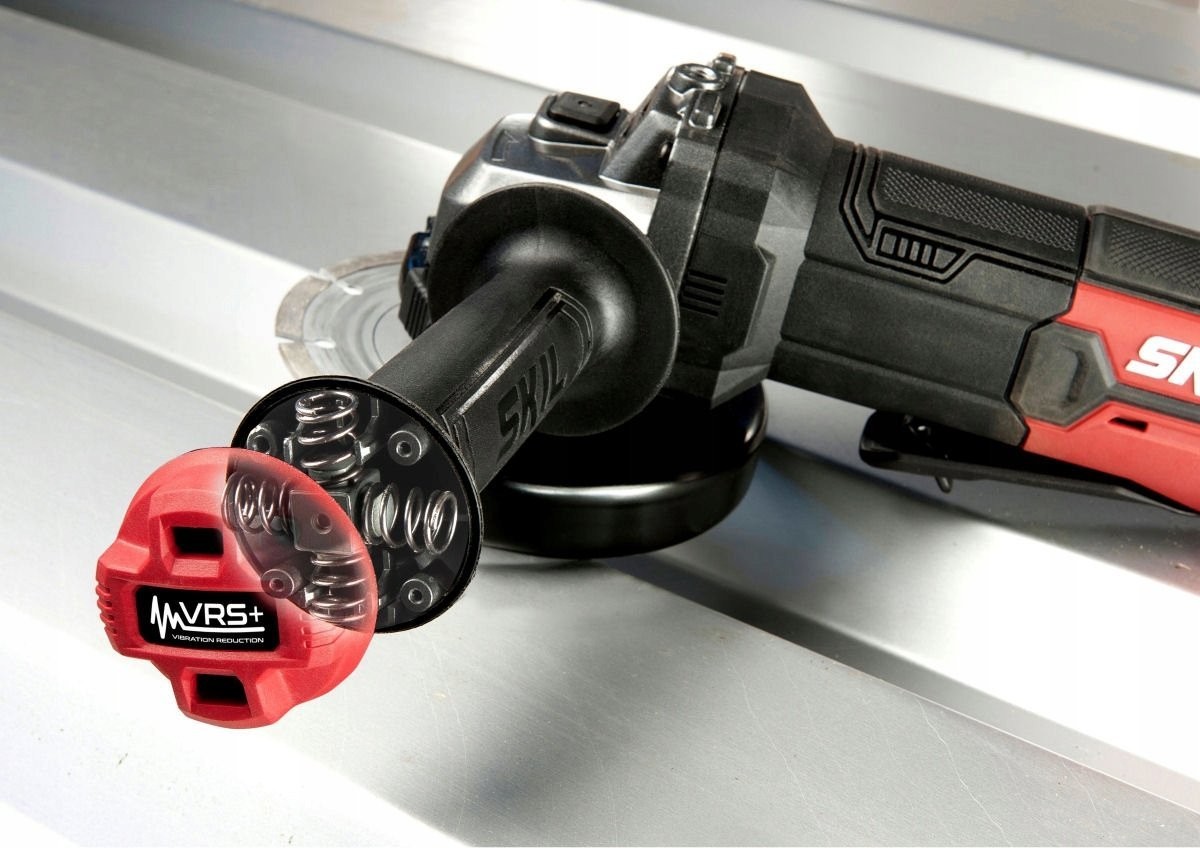 Rękojeść dodatkowa wyposażona w system antywibracyjny VRS+ to innowacyjne rozwiązanie opracowane przez inżynierów SKIL, którzy zastosowali specjalną przeciwwagę poruszającą się we wszystkich kierunkach. Ten dynamiczny element absorbuje i znacznie redukuje poziom drgań podczas pracy, co czyni ten system wyjątkowo skutecznym w porównaniu do innych dostępnych na rynku rozwiązań.