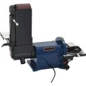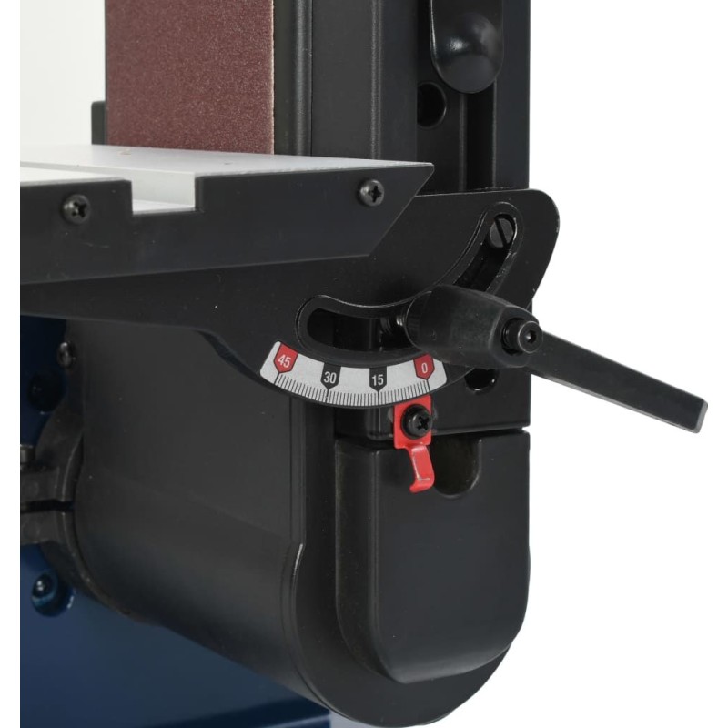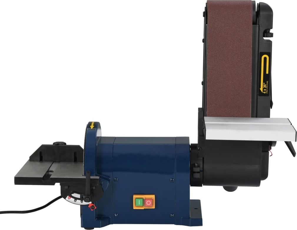 Szlifierka wyposażona jest w przechylną taśmę szlifierską, którą można stosować w pozycji pionowej, poziomej lub pod dowolnym innym kątem pomiędzy. Blat roboczy do tarczy szlifierskiej można również przechylać pod dowolnym kątem do 45. Dzięki zapięciom na rzepy papier ścierny da się łatwo przymocować lub wymienić. Dodatkowo szlifierka jest wyposażona w miernik do dokładnego szlifowania kątowego.