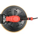 Duża powierzchnia robocza (zewnętrzna średnica tarczy 400 mm) zapewnia szybkie i efektywne wygładzanie dużych powierzchni. Możliwość zastosowania przedłużki Yato YT-82332 (dostępnej osobno) znacząco zwiększa komfort pracy przy zacieraniu sufitów lub wysoko położonych ścian, eliminując potrzebę korzystania z rusztowań czy drabin. W zestawie znajdują się wymienne tarcze oraz papier ścierny, co pozwala na wszechstronne zastosowanie urządzenia, w tym wyrównywanie płyt styropianowych przy termomodernizacji oraz usuwanie wierzchnich warstw tapet winylowych.