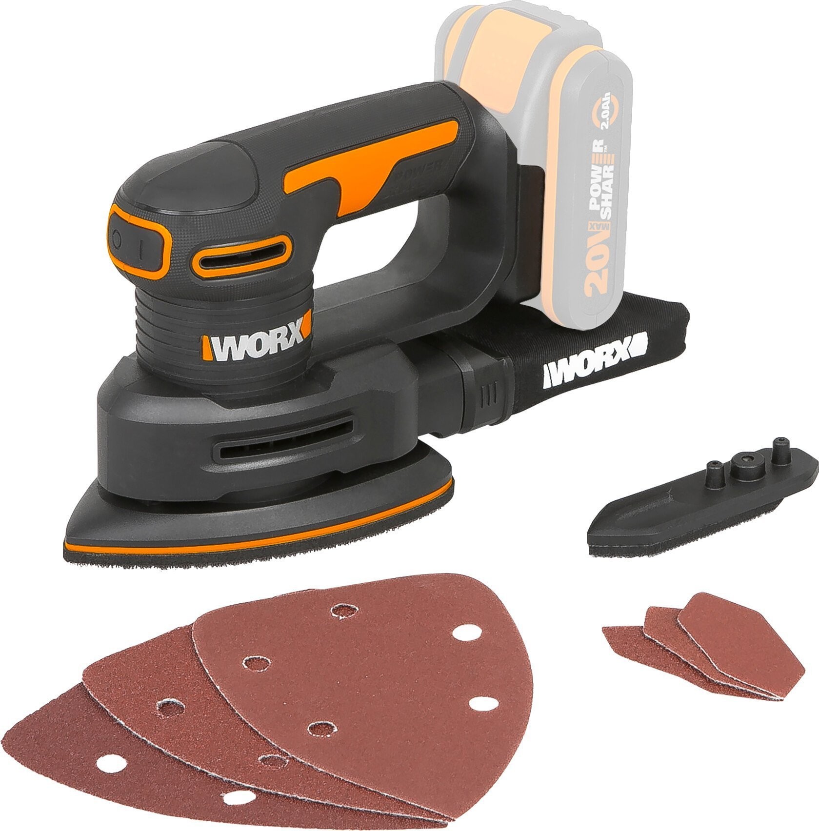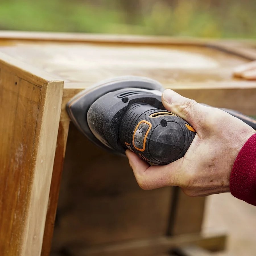 Niski poziom drgań, wynikający z odpowiedniego wyważenia urządzenia, zwiększa komfort użytkowania, szczególnie podczas dłuższych sesji. Bezszczotkowy silnik generuje prędkość 12 000 oscylacji na minutę przy 2-milimetrowej amplitudzie ruchu, co pozwala uzyskać idealnie gładką powierzchnię bez smug. Model WX822 waży zaledwie 800 gramów, a dzięki uszczelnionemu włącznikowi jest odporny na pył. Szlifierka należy do platformy Worx PowerShare, co umożliwia używanie tego samego akumulatora w innych narzędziach Worx.
