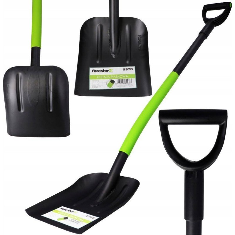 FORESTER łopata piaskowa Łopata piaskowa to solidne narzędzie z metalowym trzonkiem, o wzmocnionej konstrukcji i wysokiej odporności na uszkodzenia przeznaczone do przenoszenia materiałów sypkich. Kod produktu: 2578