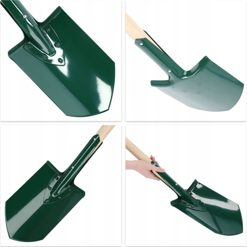 - Krawędzie szpadla wygięte są łukowato, co daje możliwość postawienia na nim stopy, tak aby ciężarem ciała wspomóc proces kopania i powiększyć głębokość kopanej dziury