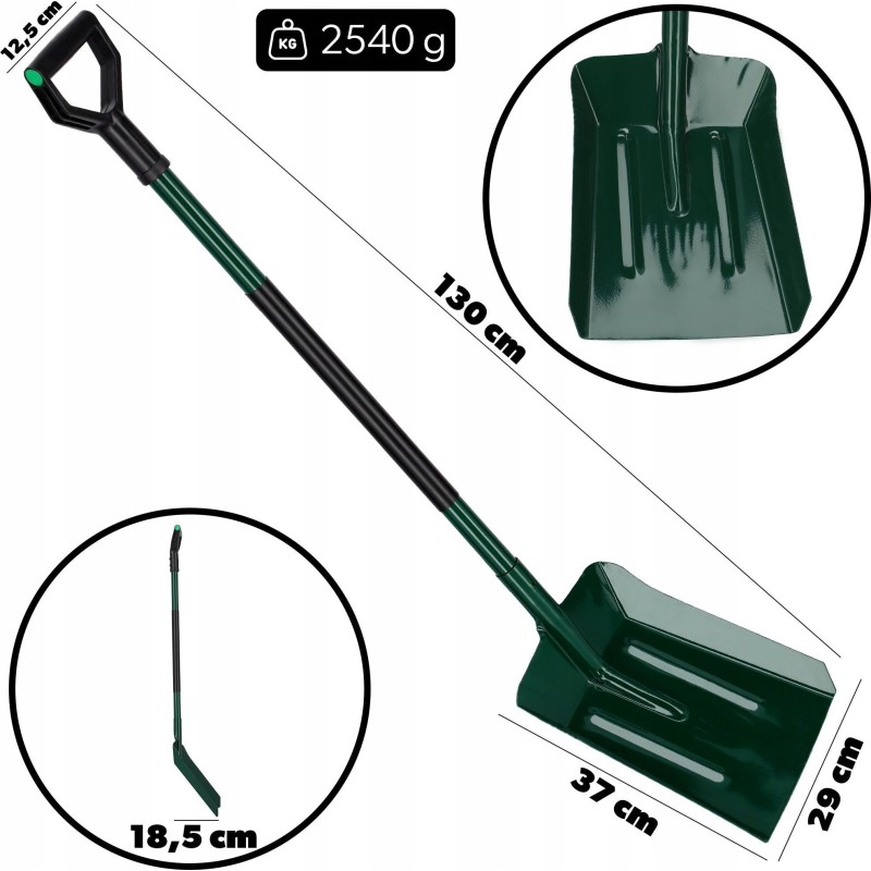 Łopata posiada wzmocnienia w postaci nitów, co jeszcze bardziej wpływa na wytrzymałość produktu. Szeroka szufla umożliwia łatwe zgarnianie, a zwężające się krawędzie pozwalają utrzymać zawartość na łopacie. Ergonomiczna rączka zapewni Ci komfort pracy, a trzonek pomaga zmaksymalizować przyczepność oraz izoluje przed zimnem.