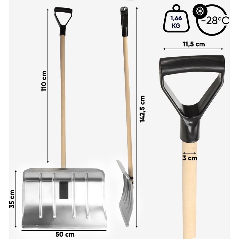 ERGONOMICZNA — łopata do śniegu ma ergonomiczną budowę, dzięki której operowanie nią jest niezwykle wygodne. Wyposażona w długi, drewniany trzonek z wygodnym uchwytem dobrze radzi sobie z mocno zamarzniętymi powierzchniami.