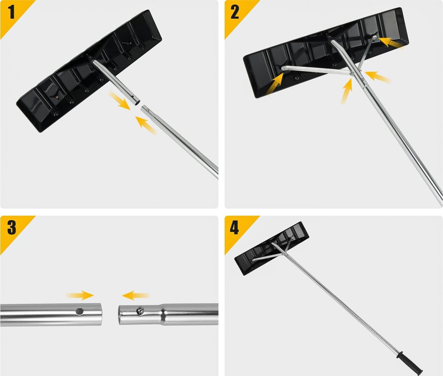 - Złożenie narzędzia: Wybierz odpowiednią ilość przedłużek, aby dopasować długość łopaty do wysokości, którą chcesz odśnieżyć.