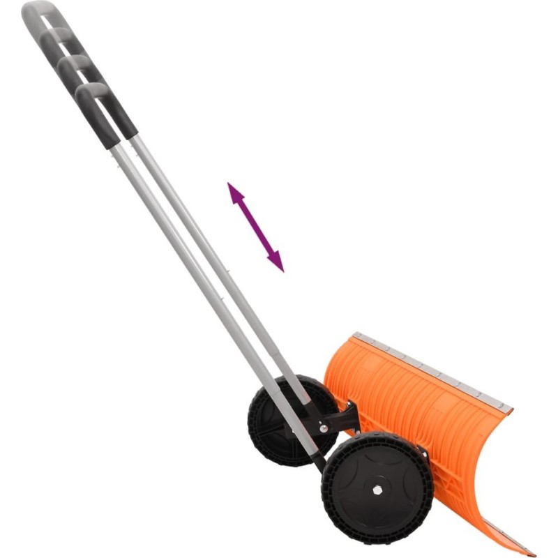 - Większa uniwersalność: rączkę zgarniacza do śniegu można wyregulować w zakresie od 143 do 171,5 cm, uzyskując jej odpowiednią długość. Oprócz tego zaokrągloną łopatę zgarniającą można ustawić w lewo lub w prawo, co zapewnia większą swobodę.