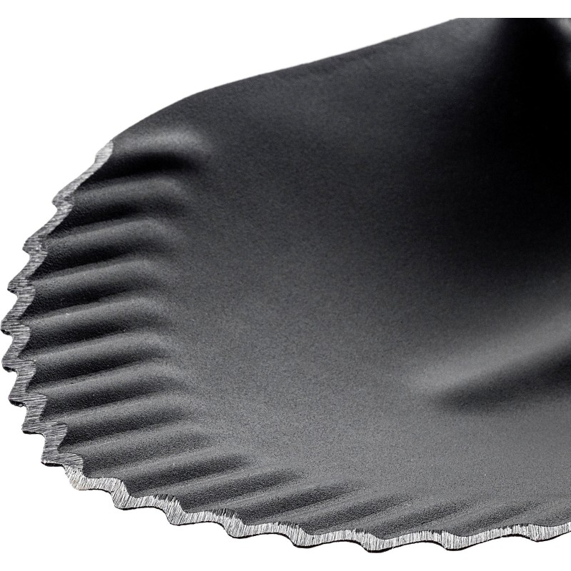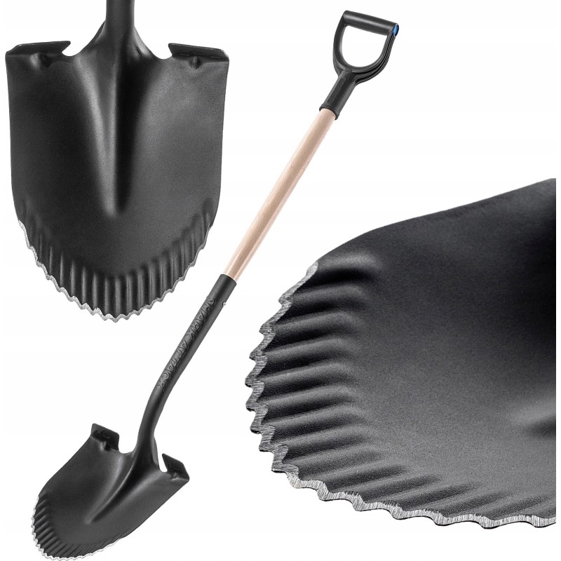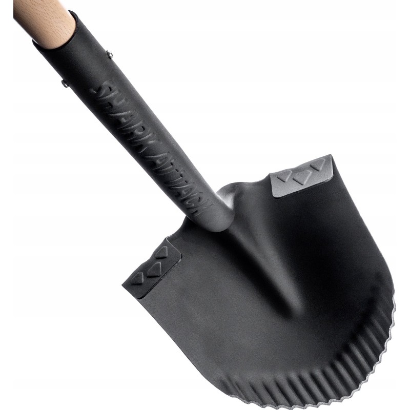 Produkt ten został wyposażony w oryginalny, innowacyjny element, jakim są wzorowane na kształt zębów rekina ostrza umieszczone na górze łopaty. To dzięki nim wbijanie w ziemię jest łatwiejsze i szybsze. Warto go mieć!