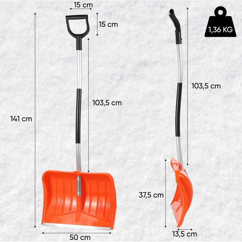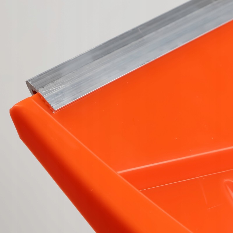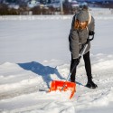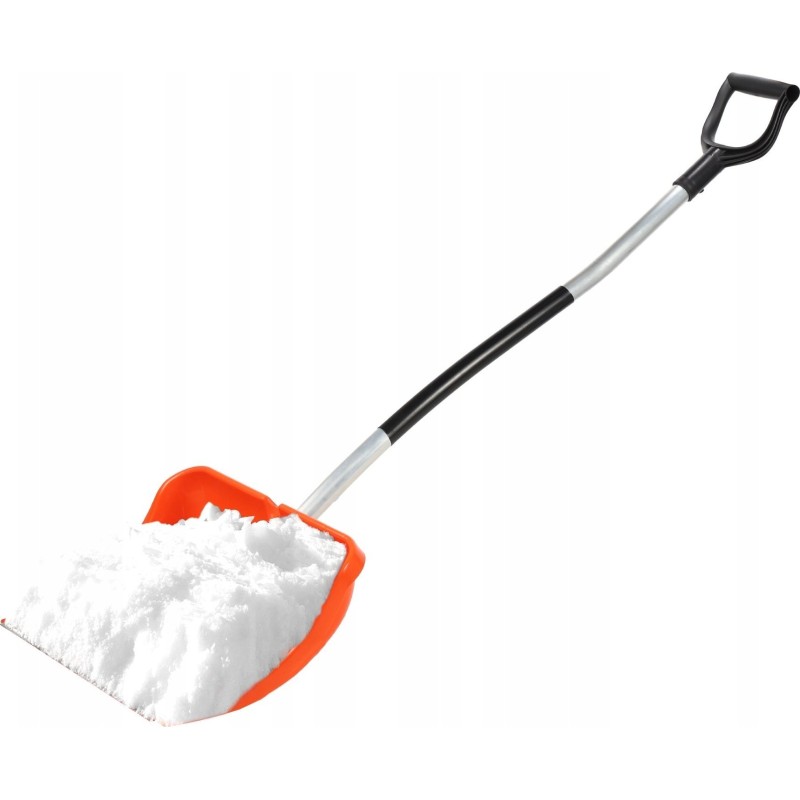 ERGONOMICZNA – długi, wygięty trzonek narzędzia pozwala przez długi czas odgarniać śnieg bez obaw o bóle pleców. Łopata do śniegu o wymiarach 50 x 141 cm dostępna jest w dwóch kolorach: czarnym i pomarańczowym.