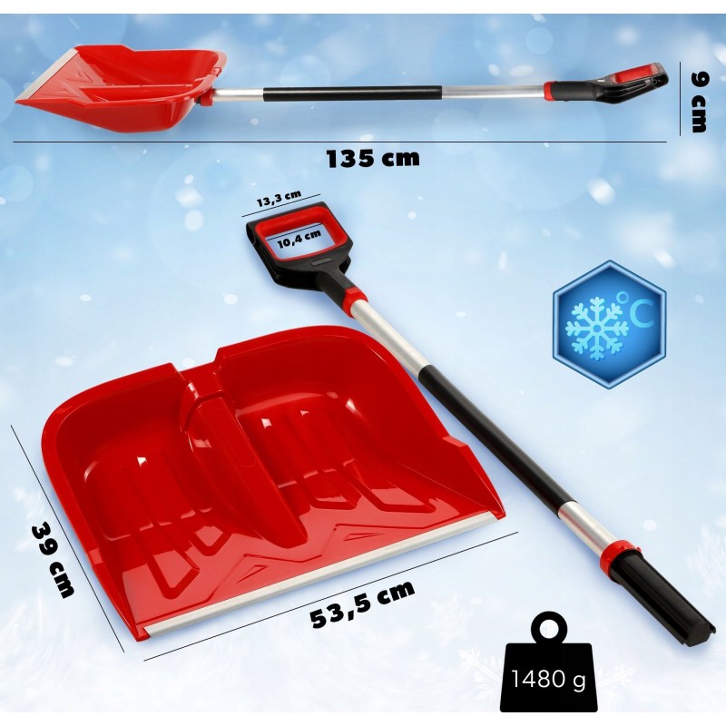 Narzędzie wykonane z solidnych materiałów pozwoli przez długi czas odgarniać i przerzucać śnieg, bez obaw o uszkodzenia. Posiada aluminiową krawędź natarcia, dlatego z łatwością poradzi sobie ze śniegiem, lodem i błotem poślizgowym. Co więcej, łopata ma szeroką i pojemną szuflę, dlatego z jej pomocą szybciej odśnieżysz większy kawałek terenu. Warto mieć ją w swoim zimowym wyposażeniu!