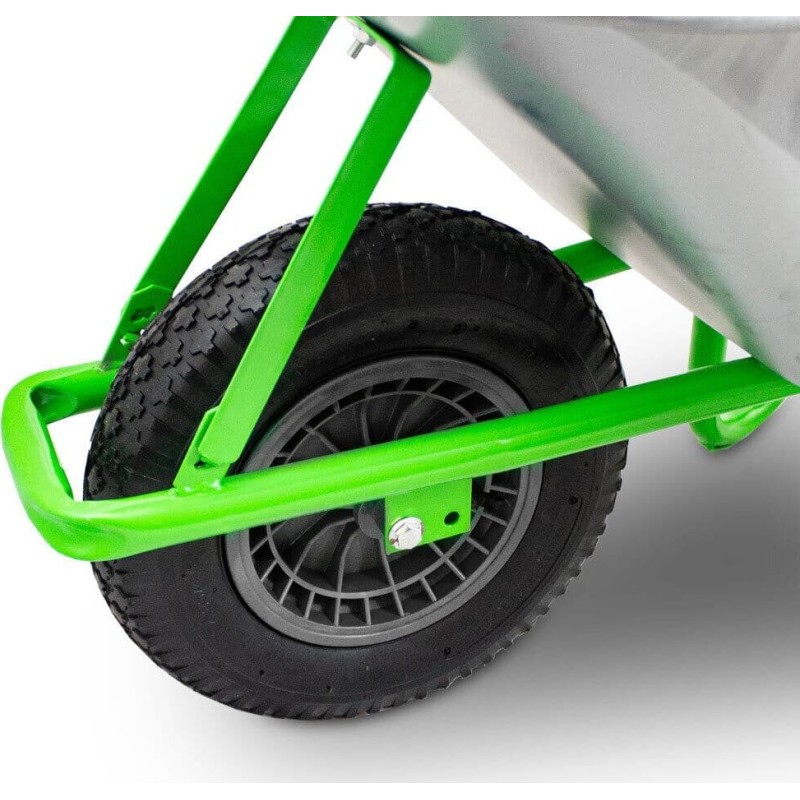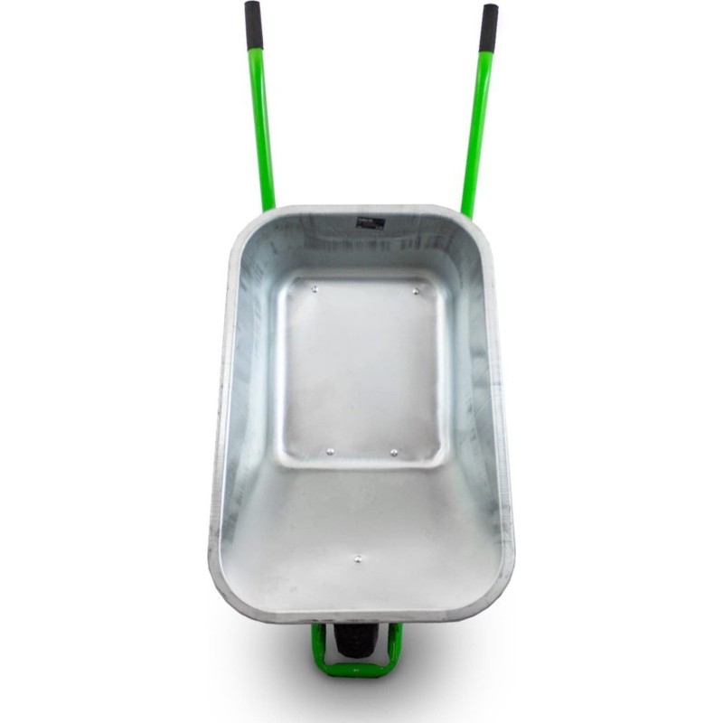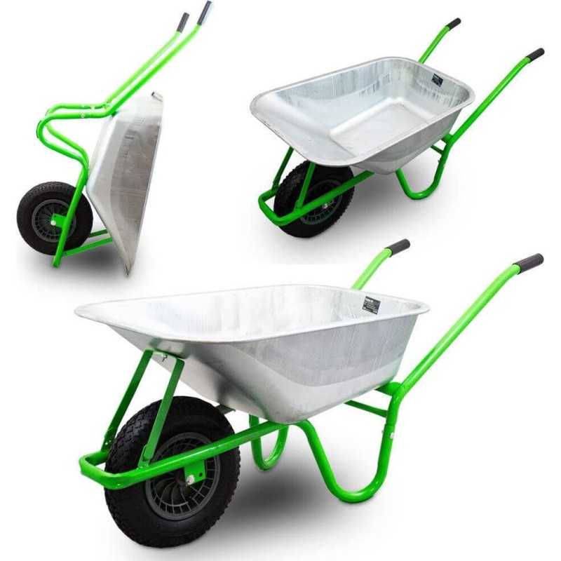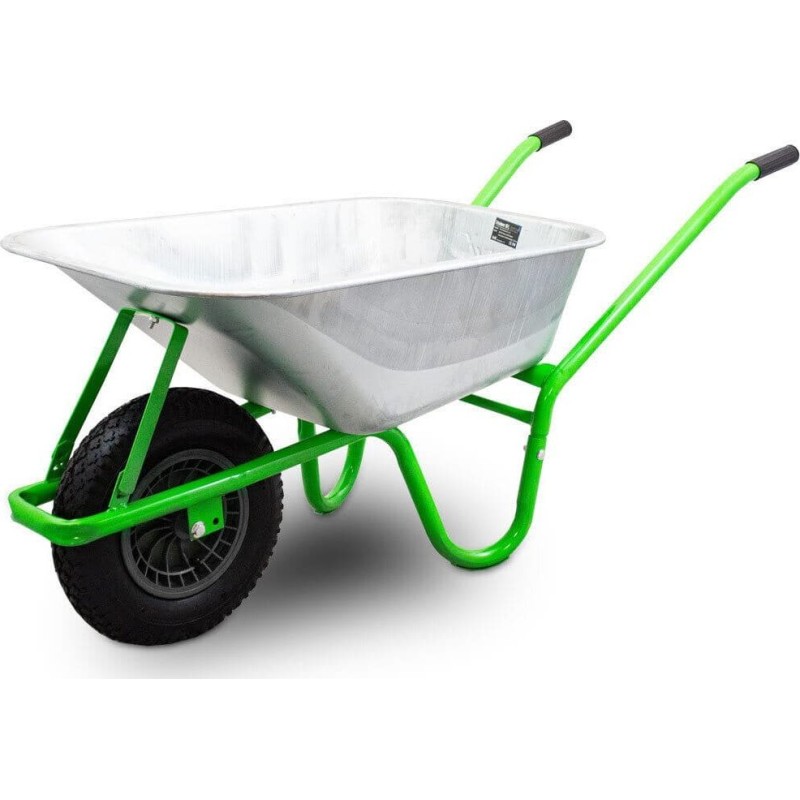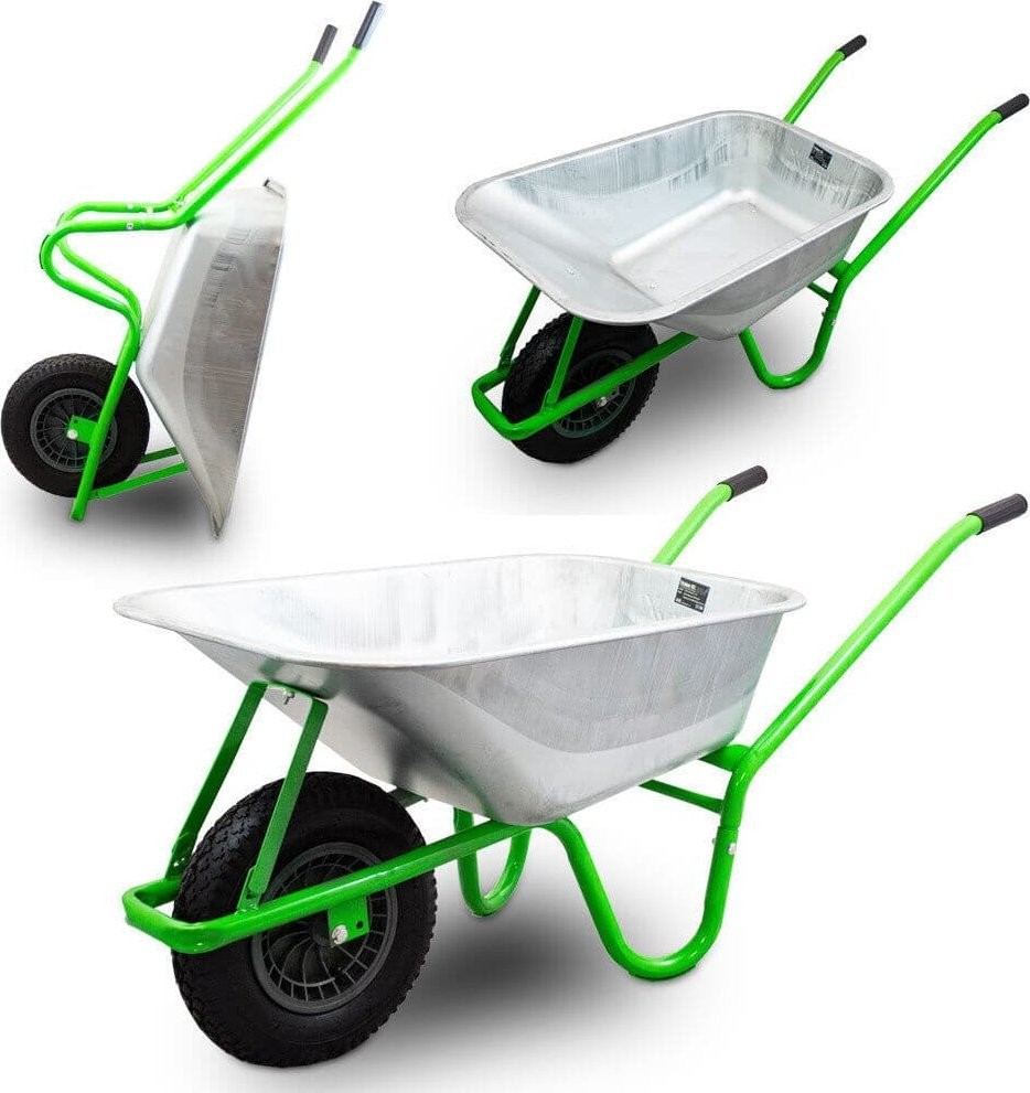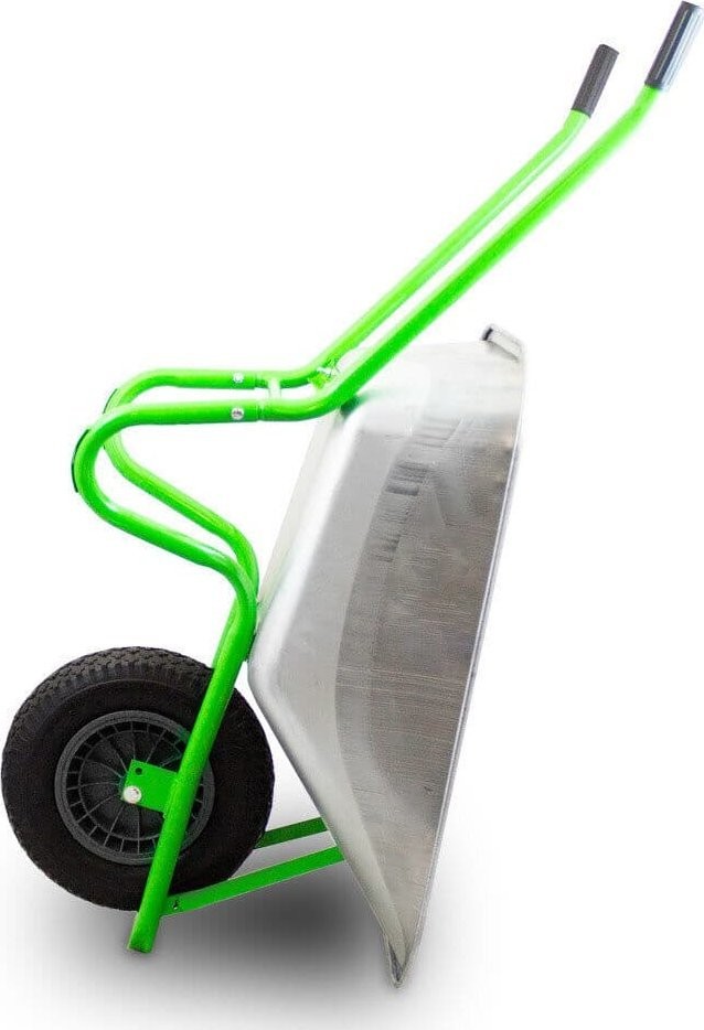 Uniwersalna taczka do prac ogrodowych i budowlanych. Taczka lekko się prowadzi, posiada wygodne antypoślizgowe uchwyty. Idealna do przewożenia ziemi, liści, torfu lekkich materiałów budowlanych.Taczka z pojemną 100l ocynkowaną misą i stalowym stelażem.