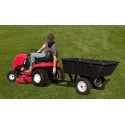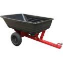 Wysokiej jakości przyczepka ogrodowa, możliwa do zamontowania w traktorkach ogrodowych lub podobnych urządzeniach. Lekka, wykonana z mocnego tworzywa sztycznego. Idealna do przewozu trawy, gruntu, żwiru, piasku, roślin, kamieni, nawozów czy narzędzi podczas drobnych prac ogrodowych.Pasuje do większości kosiarek traktorowych dostępnych na rynku. Większa sztywność w porównaniu z przyczepkami które mają otwierane wszystkie burty. Wykonana z wyjątkowej jakości tworzywa. Ładowność do 180 kg.