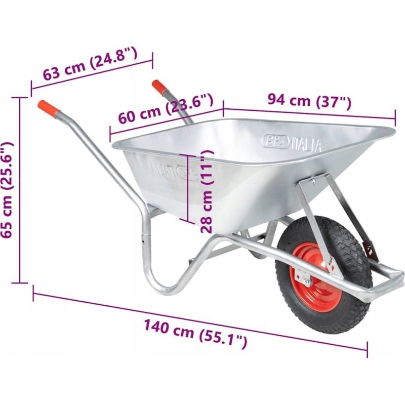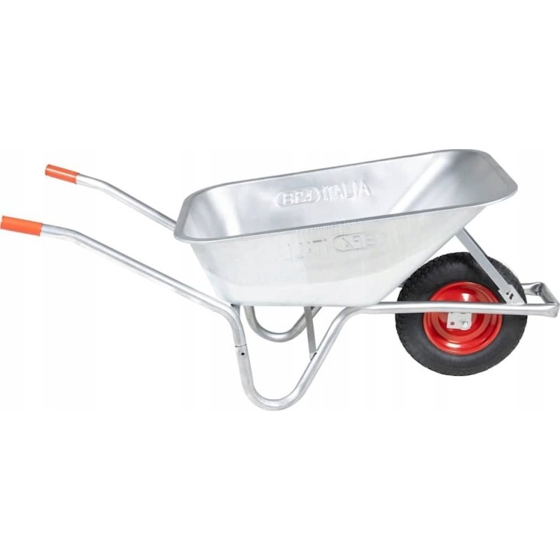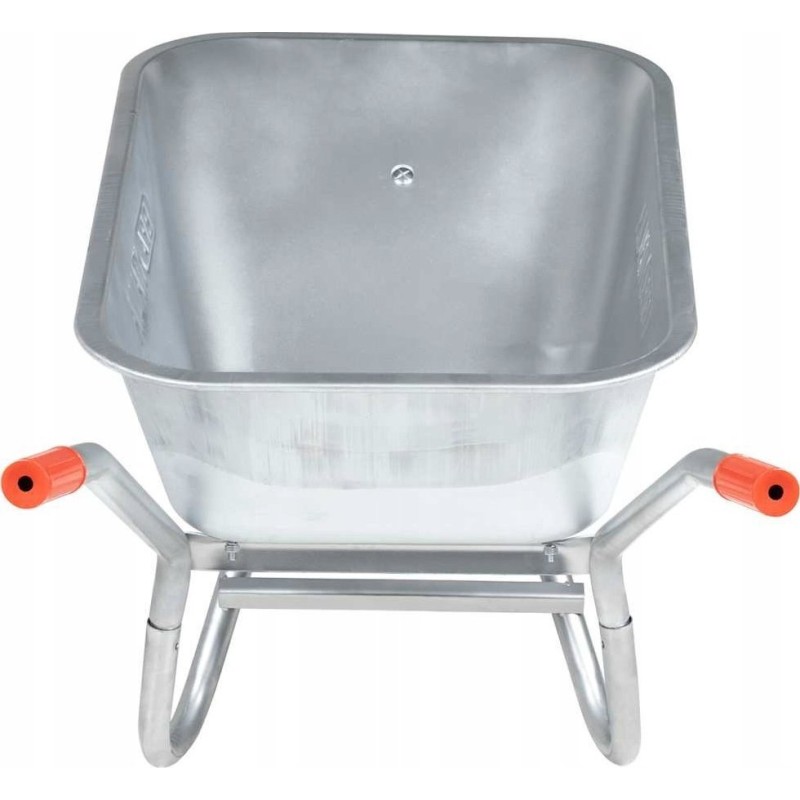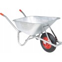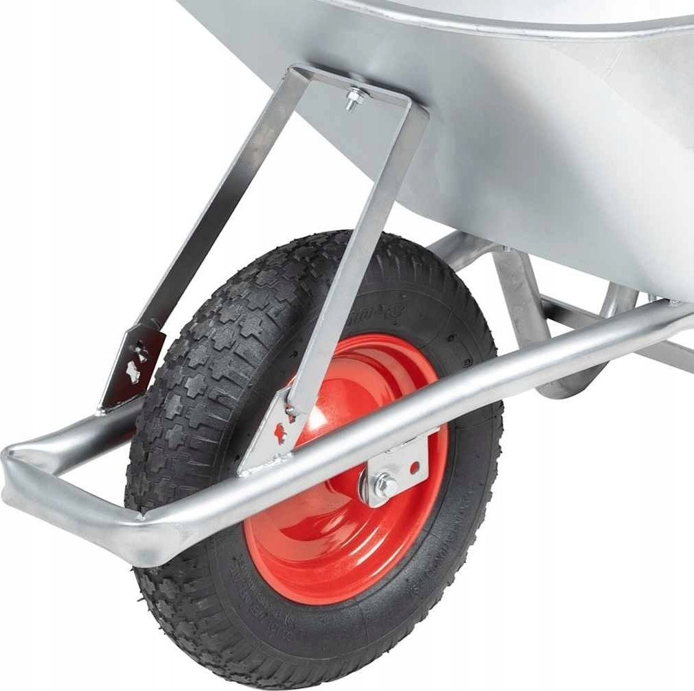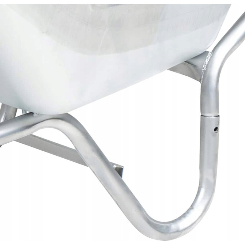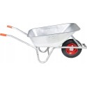 Rama taczki wykonana jest z galwanizowanej stali, co zapewnia jej wysoką odporność na niekorzystne warunki atmosferyczne oraz długotrwałe użytkowanie. Dzięki temu, taczka doskonale sprawdzi się podczas pracy na świeżym powietrzu, gdzie jest narażona na deszcz czy słońce.