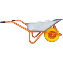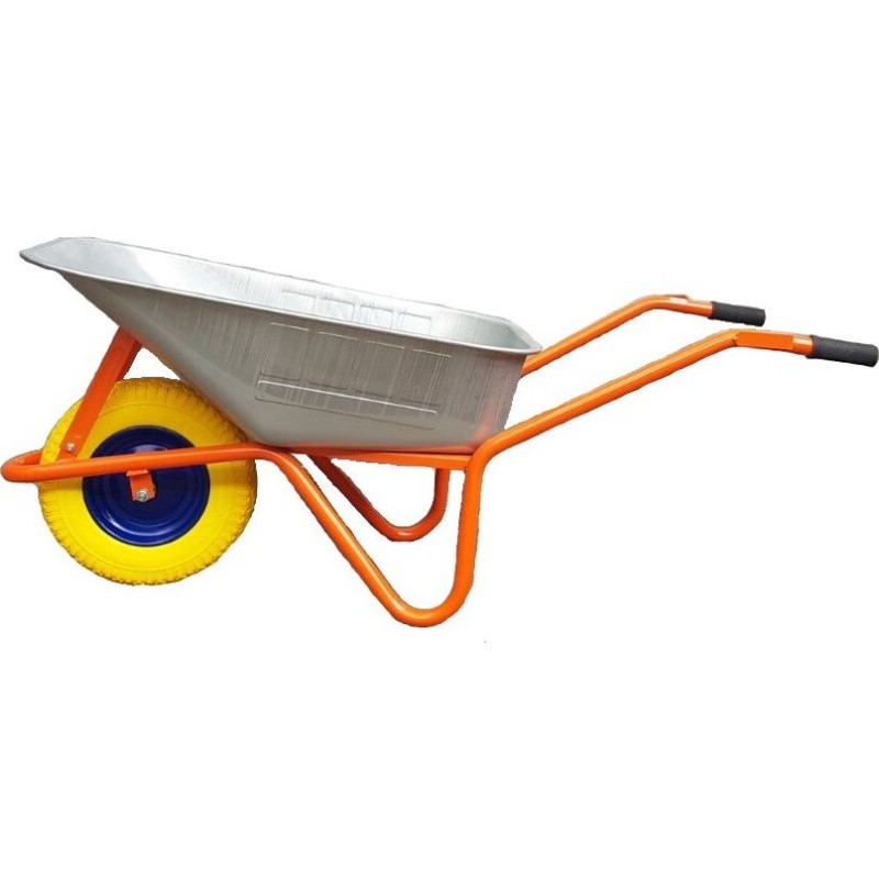 Taczki 85L. Korpus wózka ocynkowany, podwójne dno, kółko - poliuretan z łożyskami, odporne na przebicie. Udźwig - 200kg.
