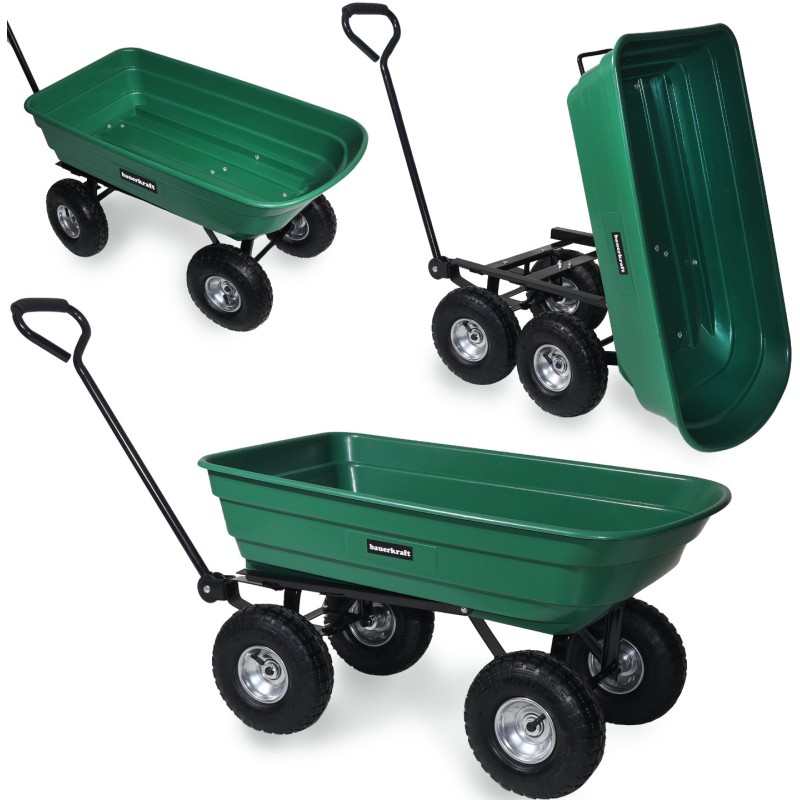 Wielozadaniowy wózek transportowy, Doskonale sprawdzi się do prac przydomowych i ogrodowych. Dzięki swoim funkcjom: wózka, taczki i wywrotki ułatwi wykonywane prace. Stabilna konstrukcja oraz zwrotność wózka pozwoli w łatwy sposób przewozić ładunek o pojemności 100 litrów i wadze 300 kg.