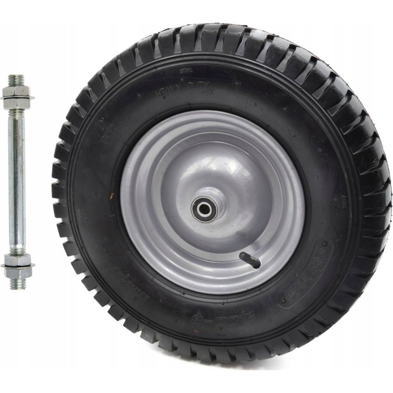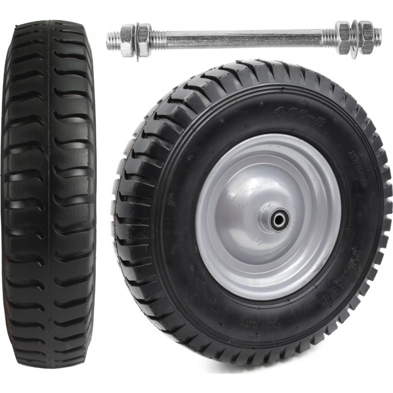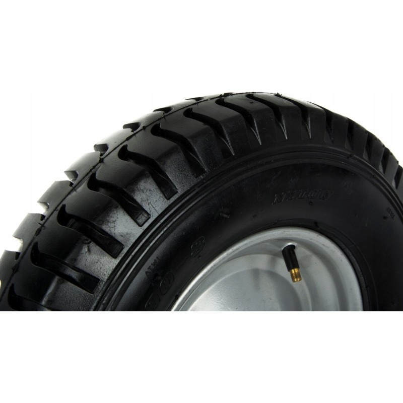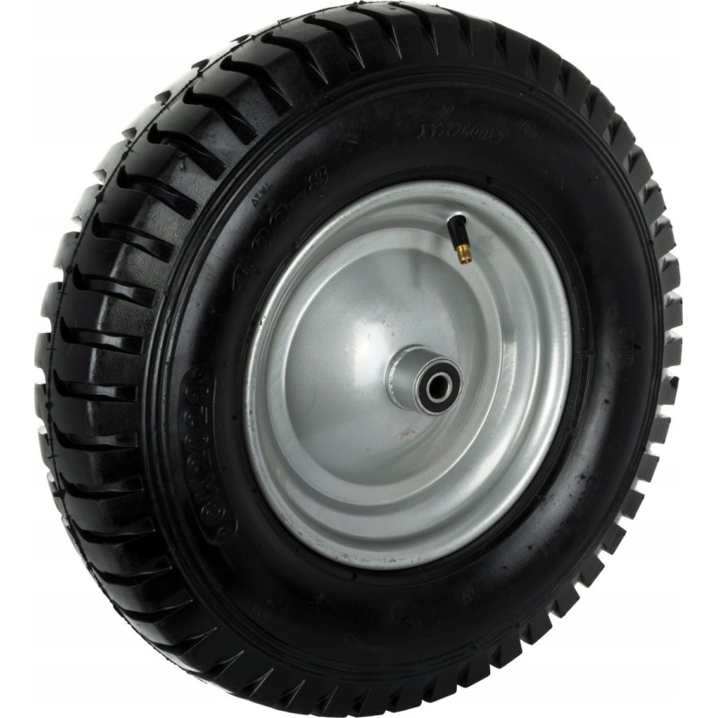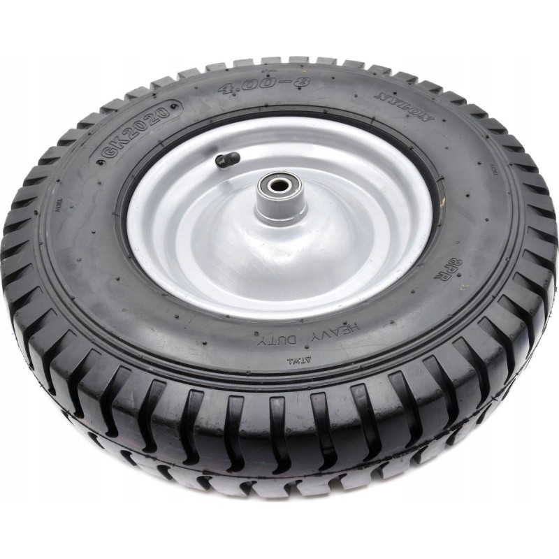 Koło 4.00-8 8PR do taczki o maksymalnym obciążeniu do 230 kg. Wytrzymała metalowa felga malowana proszkowo zapewnia podwyższoną stabilność. Całość wykonana z wysokiej jakości materiałów.