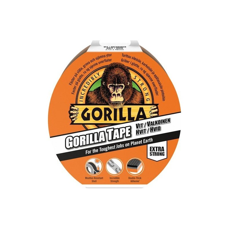 Gorilla Sports Gaffatape - 48mm - Hvid - 27 m.