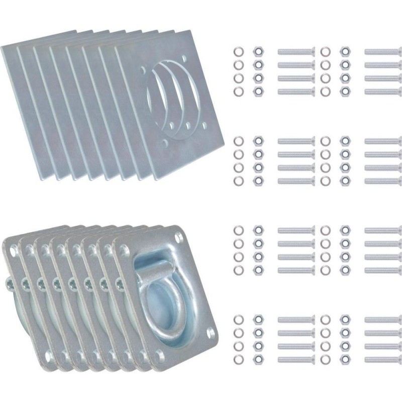 Te wytrzymaÅe pierÅcienie mocujÄce idealnie nadajÄ siÄ do przymocowania ciÄżkich Åadunków do przyczepy lub platformy ciÄżarówki i furgonetki. Solidne stalowe pierÅcienie zostaÅy galwanizowane, co sprawia, że sÄ odporne na rdzÄ i mogÄ byÄ używane w warunkach zewnÄtrznych przez dÅugi czas. Produkt znajduje siÄ w zestawie z pÅytkami mocujÄcymi, podkÅadkami i Årubami - wszystkim, czego potrzebujesz, aby zamontowaÄ pierÅcienie na swojej przyczepie.