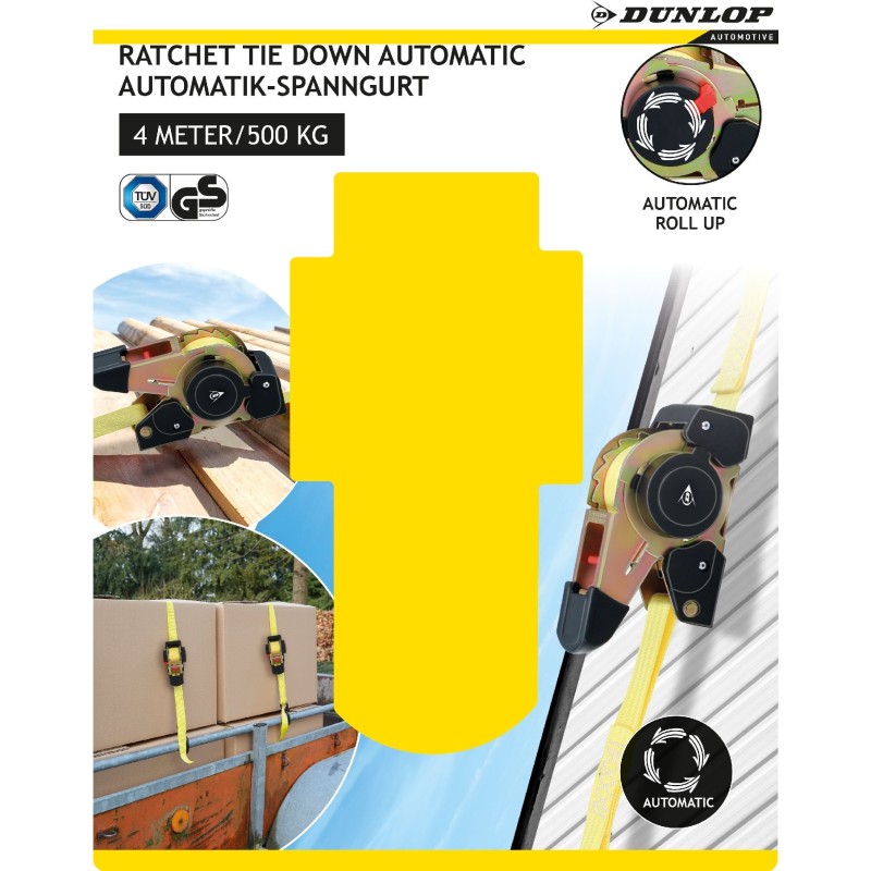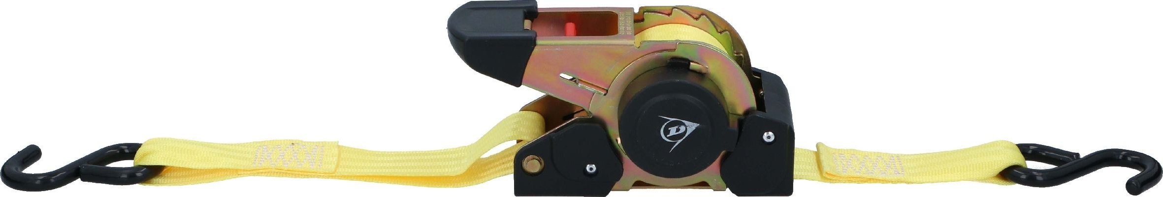 Pas transportowy do mocowania marki Dunlop z automatycznym napinaczem służy do zabezpieczania ładunku i zapobieganiu jego przemieszczeniu. Pas został wykonany z nylonu co nadaje mu niezwykłej wytrzymałości. Pas zakończony jest solidnymi, metalowymi hakami.