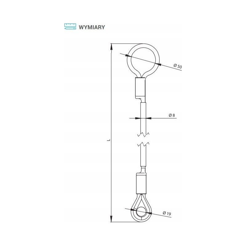 Zaczep linkowy składa się z odcinka linki nierdzewnej, zakończonej pętlami o różnych średnicach, które umożliwiają wykonanie pętli bez konieczności stosowania dodatkowych łączników