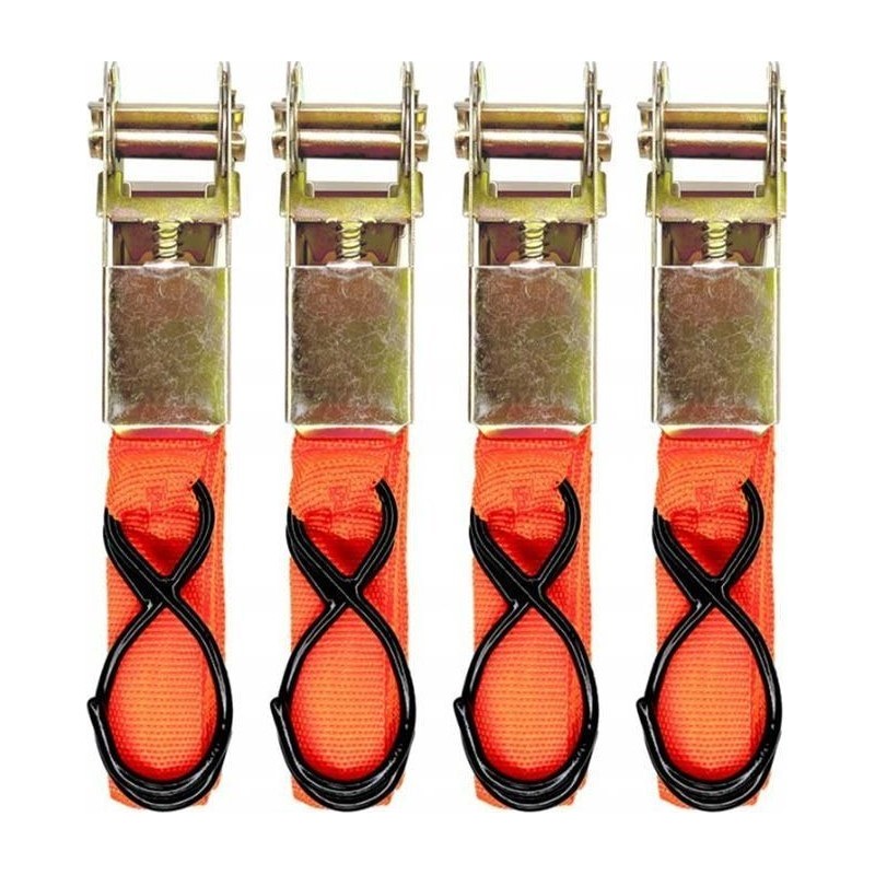 Komplet dwuelementowych pasów z hakiem i napinaczem (grzechotką). Idealne do przytrzymania i mocowania ładunku, a także przenoszenia mebli. Idealnie sprawdzą się w transporcie gabarytowych towarów. Bardzo mocne poliestrowe taśmy Metalowa klamra zapadkowa Stalowy hak powleczony tworzywem sztucznym Zestaw zawiera: 4x pas z hakiem 4x pętla z napinaczem ZALETY PRODUKTU: zabezpieczanie ładunków podczas transportu. przeciwdziałanie siłom działającym na ładunek w czasie jego przemieszczania. ograniczenie strat wynikających z przemieszczania się transportowanych ładunków mogą być wykorzystywane do lawety, przyczepki a także jako pasy ściągające do bagażu SPECYFIKACJA: Szerokość pasa: 25 mm Długość pasa: 4,5 m 4x pas z hakiem 4x pętla z napinaczem Oryginalne opakowanie