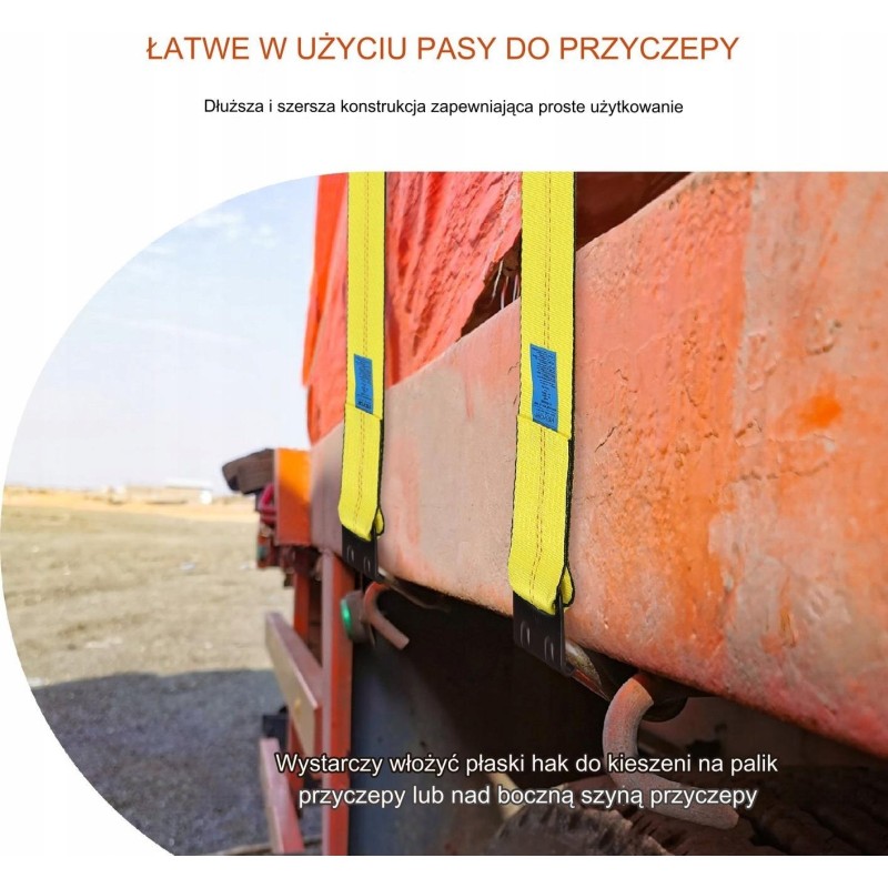 Zapomnij o skomplikowanych hakach; płaski hak na tej linii holowniczej jest o wiele wygodniejszy. Owiń go wokół szyn pojazdu holowniczego, a następnie zamocuj go do drugiego końca boku przyczepy. Po użyciu, łatwo go przechowywać bez zajmowania nadmiernej ilości miejsca.