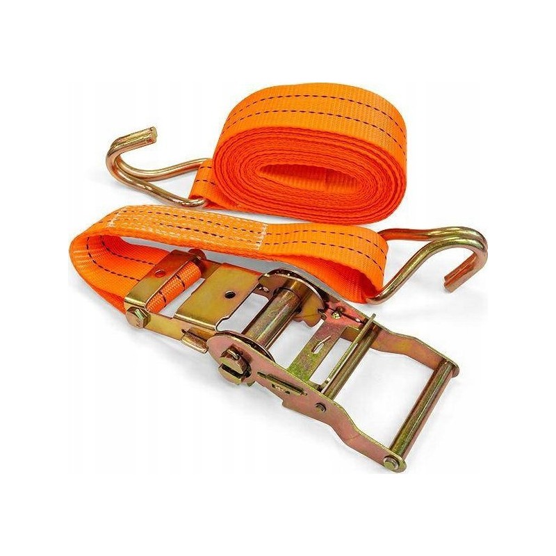 Tasma wykonana z poliestru. Zgodne z europejską normą PN-EN 12195-2. Solidny mechanizm napinacza. Hak typu “J”. Do profesjonalnego użytku. Wytrzymałość: 4000 / 2000 kg Wymiar: 50 mm x 9 m