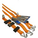 Pasy lawetowe to idealne narzędzie do mocowowania pojazdów w transporcie w szybki i bezpieczny sposób. Wszystkie komponenty są produkowane w najlepszej jakości, aby zapewnić trwałość i bezpieczeństwo. Taśma wykonana jest z wysokowytrzymałego poliestru o gęstej tkanej strukturze, co sprawia, że pas jest odpowiednio elastyczny i trwały.