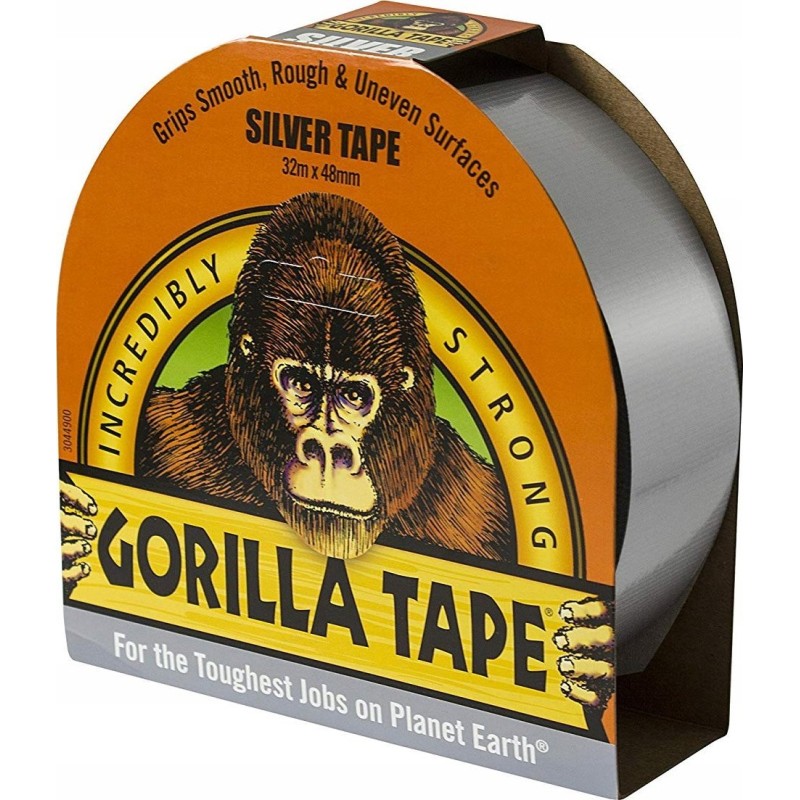Taśma nazwana Gorilla Tape to jedna z najmocniejszych taśm klejących na świecie. Doskonale sprawdza się na nierównych i szorstkich powierzchniach takich jak drewno, kamień, metal, stiuk, tynki, cegły, beton i inne. Przeznaczona do naprawy i wzmocnienia materiałów. Jej włóknina została odpowiednio wzmocniona a środek klejący jest wyjątkowo mocny. Mimo swojej ogromnej siły, taśmę można łatwo zrywać na paski i przeprowadzać naprawy.