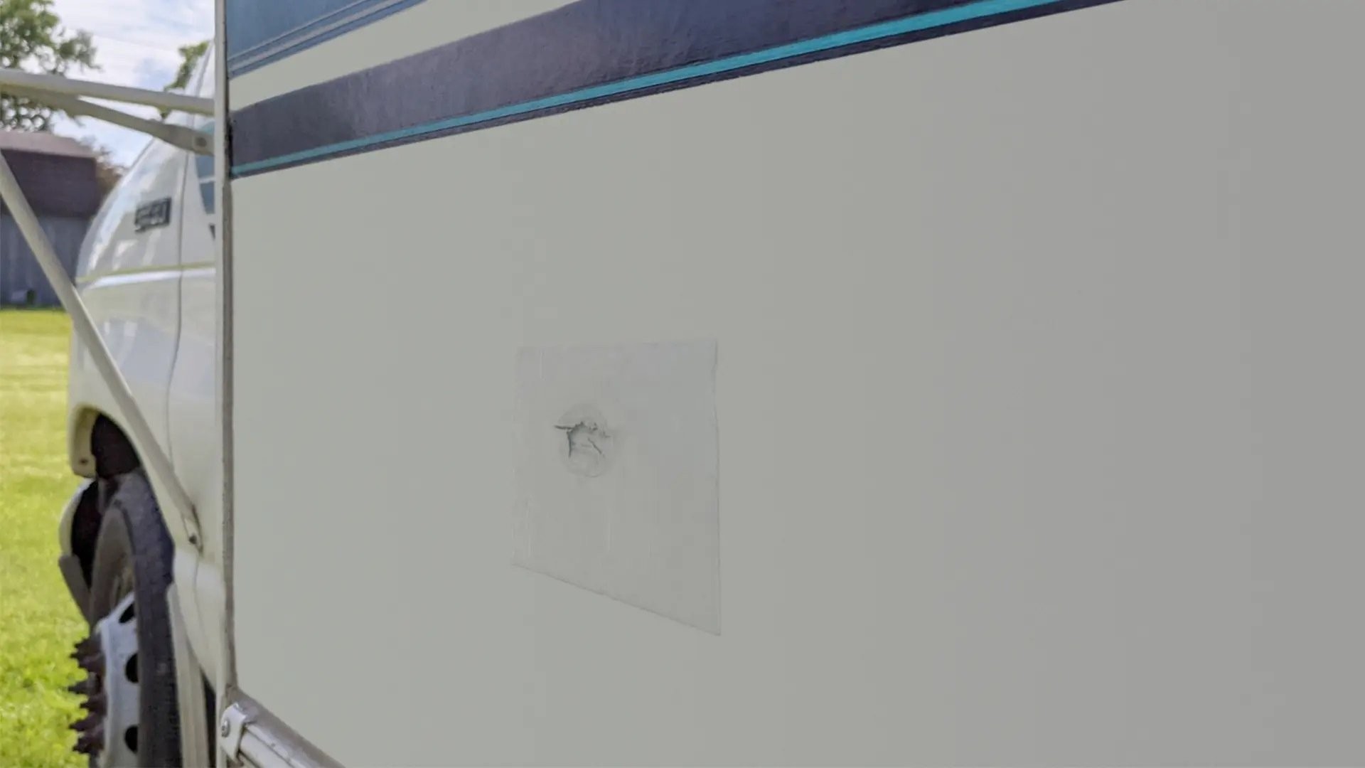 3. Energicznie wklep całą powierzchnię taśmy, szczególnie jej krawędzie. Wygładź łatkę od środka do zewnętrznych krawędzi.