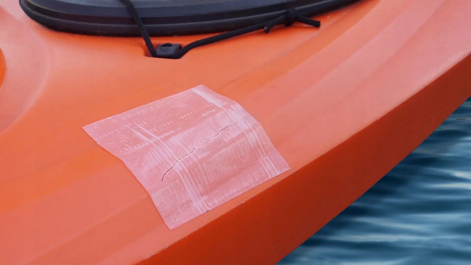 2. Usuń warstwę ochronną i umieść taśmę na wybranym obszarze naprawy. Po nałożeniu taśmy nie można jej przemieszczać.