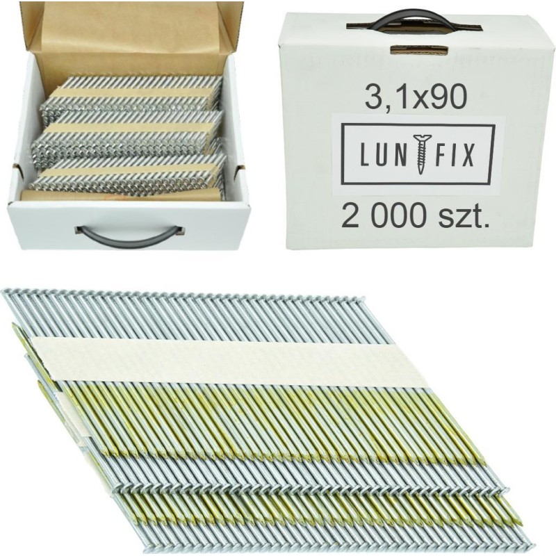 Lun Fix Gwoździe 3,1x90 mm do gwoździarki gładkie ocynkowane 2000szt
