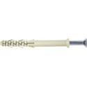 Dybel ramowo-elewacyjny do murów otworowych , koszulka nylonowa z długą strefą rozporową , wkręt z łbem stożkowym , nacięcie krzyżowe pozidrive , ocynkowany na biało .