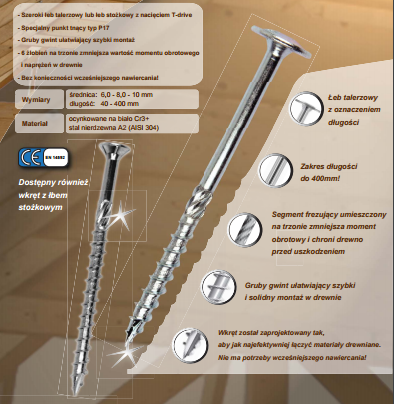 - Szeroki łeb stożkowy z nacięciem T-drive