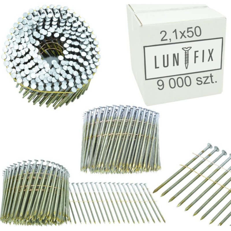 - Gwoździe pierścieniowe LUN FIX w zwojach - połączone drutem pod kątem 16°W ofercie mamy różne rozmiary