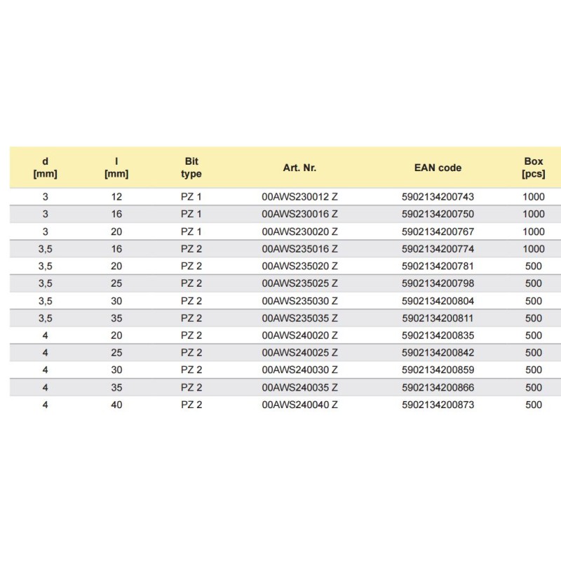 Wkręt do drewna łeb podkładkowy WHD 4.0x40mm - 00AWS240040 Z