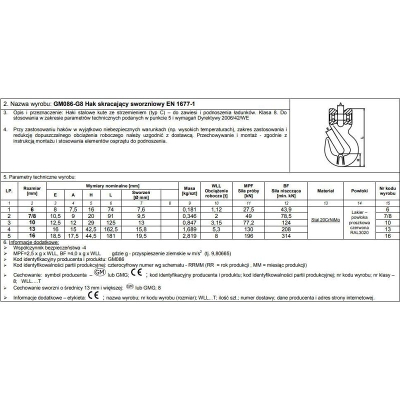 Unimet HAK SKRACAJĄCY ZE SWORZNIEM 13MM G8 WILL 5.3T