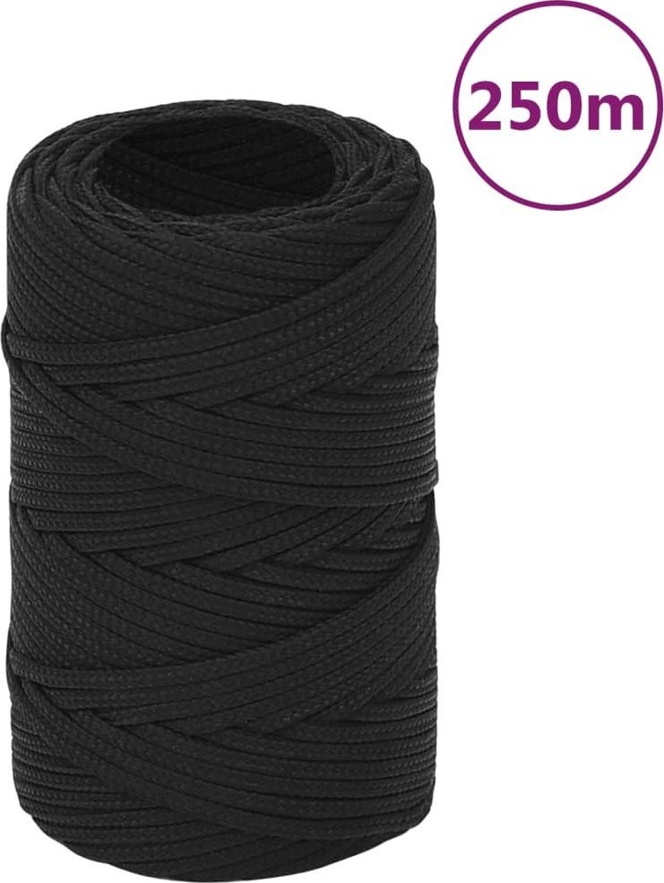 vidaXL vidaXL Linka żeglarska, czarna jednolita, 2 mm, 250 m, polipropylen