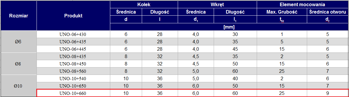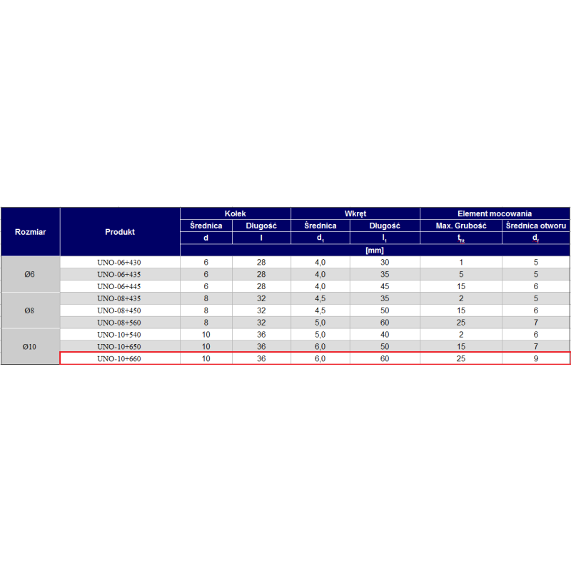 Kołek rozporowy UNO FI10 z wkrętem 6,0x60mm 100szt. - UNO-10+660