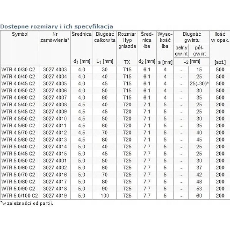- Rodzaj Wkręty