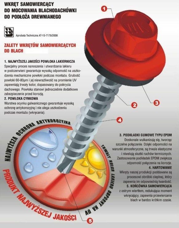Wkręt samowiercący do mocowania blachodachówki w podłożu drewnianym ,