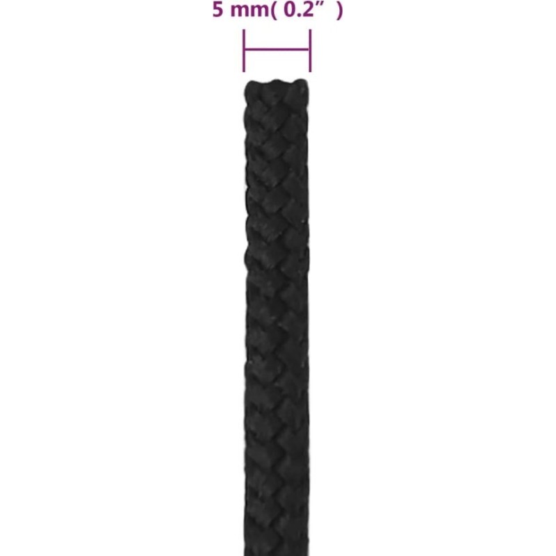 vidaXL vidaXL Linka żeglarska, czarna jednolita, 5 mm, 250 m, polipropylen