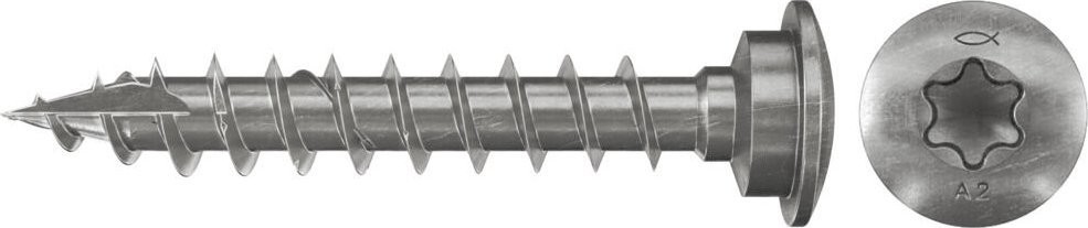 Fischer 660704. Model: Śruba, Materiały: Stal nierdzewna, Odpowiednie do materiałów: Drewno. Długość produktu: 50 mm, Długość gwintu: 4 cm, Przekątna nici: 7 mm. Ilość na paczkę: 50 szt.