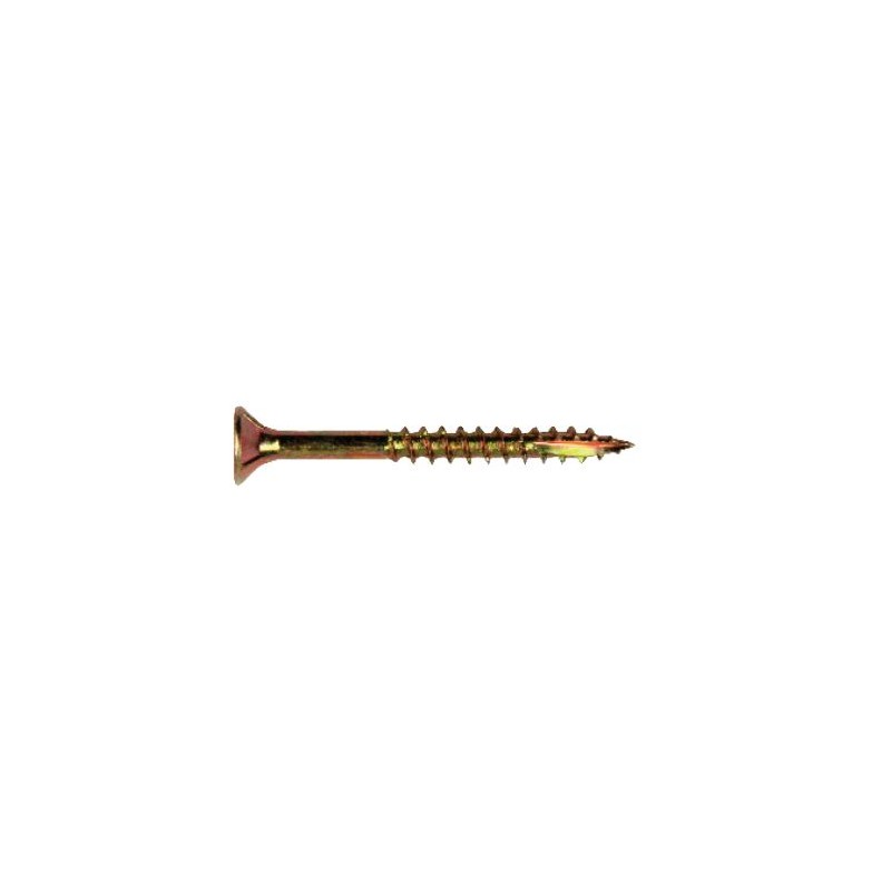 - Wkręt do drewna i płyt wiórowych z łbem stożkowym płaskim , ocynkowany na żółto