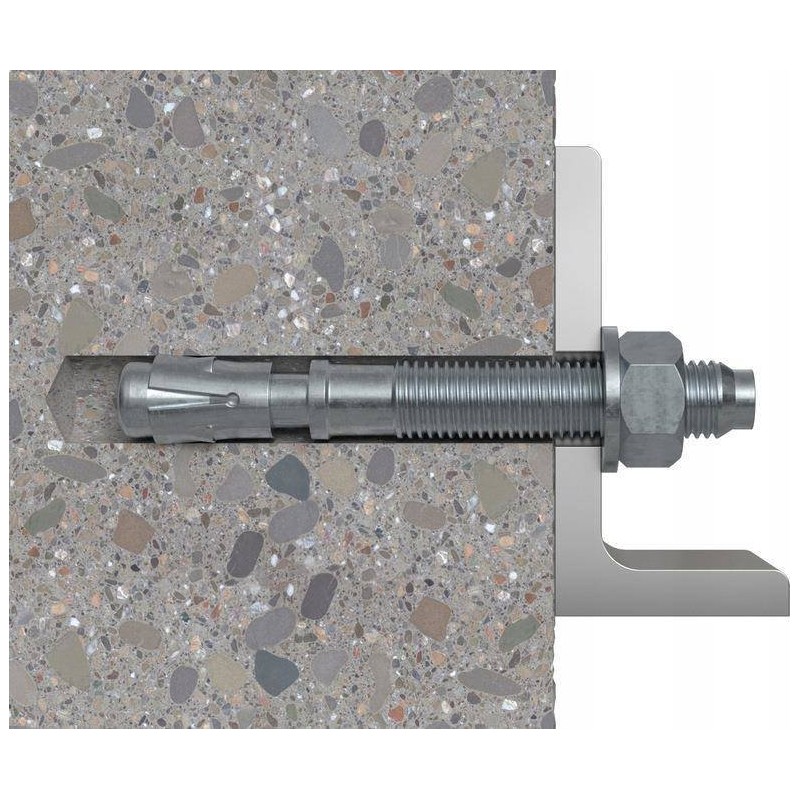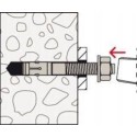 Fischer Kotwa do betonu FBN II 10X126 1 szt Krótka i mocna: niedroga śruba ze stali ocynkowanej do stosowania w betonie niespękanym. Podstawowe cechy Maksymalna nośność w betonie niespękanym. Oznacza to mniej punktów mocowania i mniejsze płyty kotwiące. Łatwa instalacja dzięki minimalnemu poślizgowi Wierzch chroni nić przed uszkodzeniem. Zapewnia to oszczędność czasu zarówno podczas montażu, jak i demontażu. Opis produktu Kotwa kotwiąca fischer FBN II K to ekonomiczna kotwa stalowa do mocowania w betonie niezarysowanym. Krótka wersja nadaje się do montażu wstępnego i przelotowego. Śruba kotwiąca wykonana jest ze stali ocynkowanej i jest zalecana do poręczy, poręczy lub konsol w pomieszczeniach. Korzyść Standardowa głębokość kotwienia zapewnia maksymalną nośność. Oznacza to, że potrzeba mniej punktów mocowania i mniejszych płyt kotwiących. Zmniejszona głębokość kotwienia zmniejsza głębokość odwiertu. Zapewnia to oszczędność czasu i zwiększa elastyczność. Długa nić zwiększa elastyczność. Mniej uderzeń młotkiem i minimalny obrót momentu obrotowego umożliwiają prostszy montaż. Pręt napędowy zabezpiecza gwintowany wkręt przed uszkodzeniem, a tym samym zapewnia szybszy montaż i demontaż łącznika. Aplikacje Konstrukcje stalowe Balustrady Konsole Maszyny Porte Fasady Materiały budowlane Zatwierdzone dla: Beton C20/25 do C50/60, niespękany Przeznaczony również do: Beton C12 / 15 Kamień naturalny o gęstej strukturze Aprobata ETA-07/0211 DOP 0192 DoP nr 0015 DoP nr 0756-CPD-0296 Instrukcje Instalacji Tryb działania FBN II nadaje się do wstępnego pozycjonowania i montażu przelotowego. Przed montażem należy umieścić nakrętkę sześciokątną w optymalnej pozycji, w której drążek napędowy jest przesunięty o ok. 1 godz. 3 mm z nakrętki sześciokątnej. Za pomocą klucza dynamometrycznego włóż śrubę stożkową do zacisku rozprężnego i wyciągnij w kierunku ściany otworu. Tłoczenie na główce daje kontrolę nad zakotwieniem. W przypadku instalacji seryjnych zalecane jest narzędzie do montażu śrub kotwiących FABS.