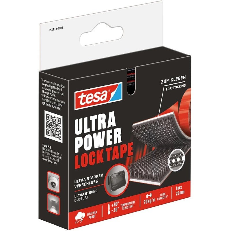 Taśma Tesa Ultra Power Lock charakteryzuje się elastycznością, co pozwala na jej bezpieczne przyklejenie nawet do sufitu. Możliwość wielokrotnego otwierania i zamykania zwiększa jej funkcjonalność, a maksymalne obciążenie dla zastosowania na suficie wynosi 0,5 kg, natomiast dla innych zastosowań to 5 kg na wysokości do 2,7 m.