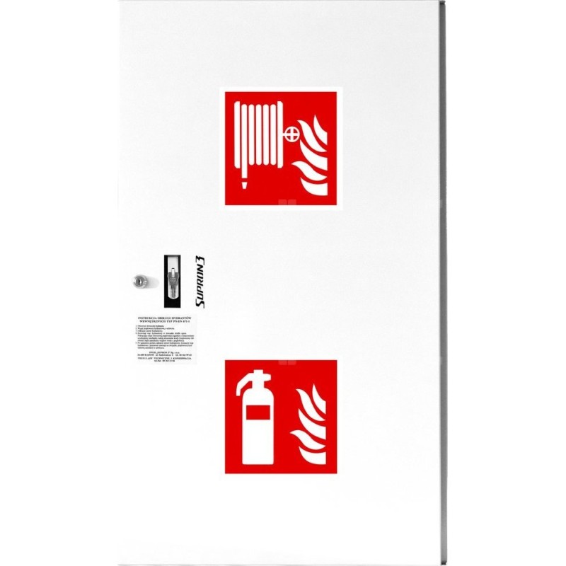 Hydrant DN52 zawieszany z koszem, 850x500x200, z miejscem na gaśnicę, wąż 2x20m, zamek patent, RAL 9003