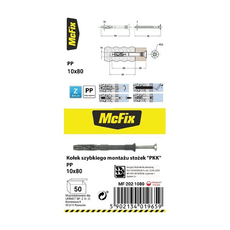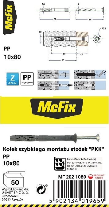MCFIX KOÅEK SZYBKI MONTAÅ» STOÅ»EK PP 10*80MM