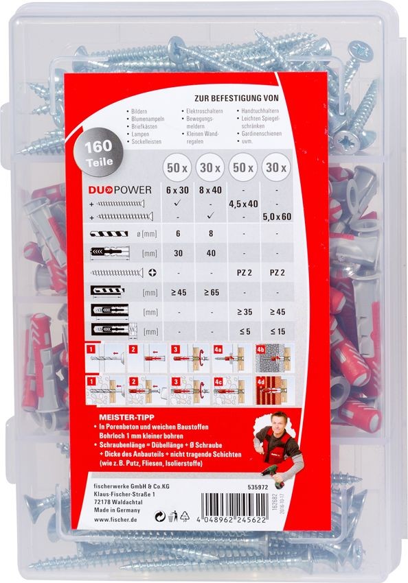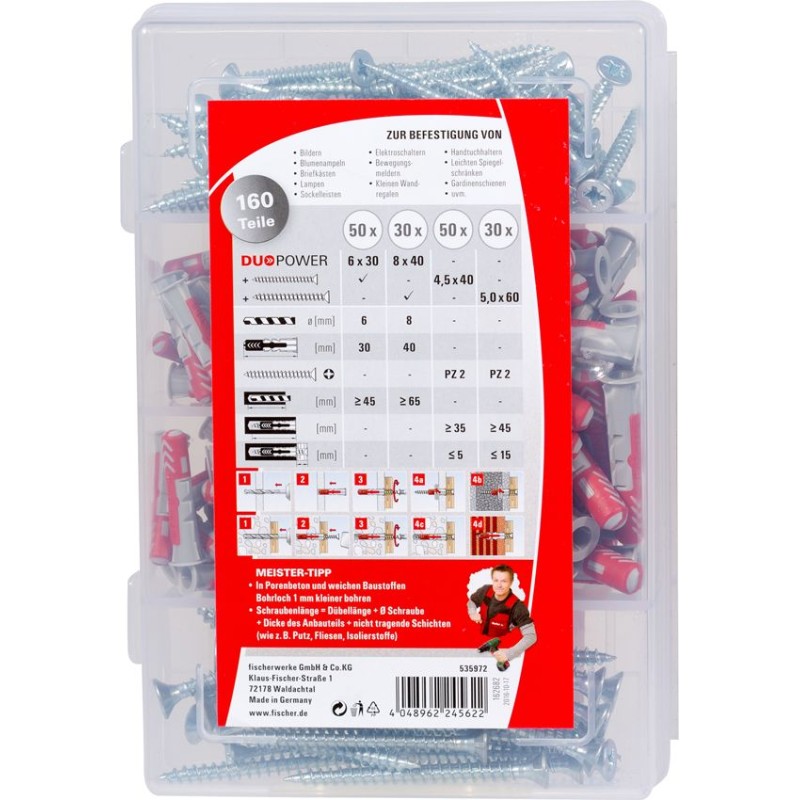 Fischer Zestaw kołków duopower z łbem stożkowym 160 szt. (535972)