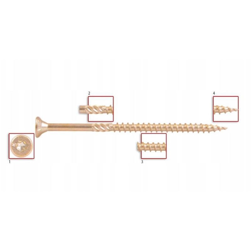Specjalne karby tnące – Ułatwiają wkręcanie i zapobiegają pękaniu drewna